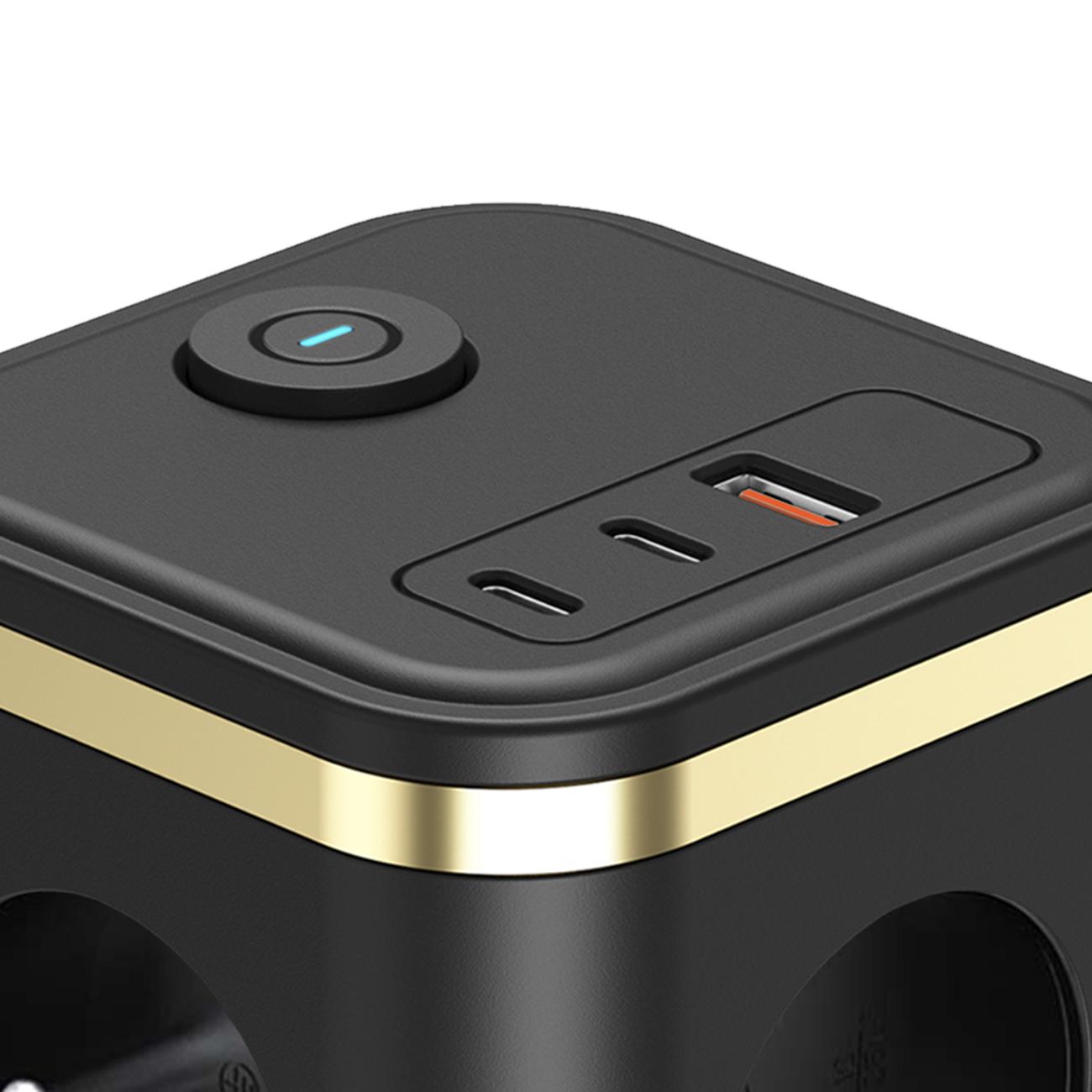 Adaptorul de rețea VIKING YC33 vă permite să încărcați convenabil până la 6 dispozitive simultan datorită 3 ieșiri AC și 3 porturi USB.