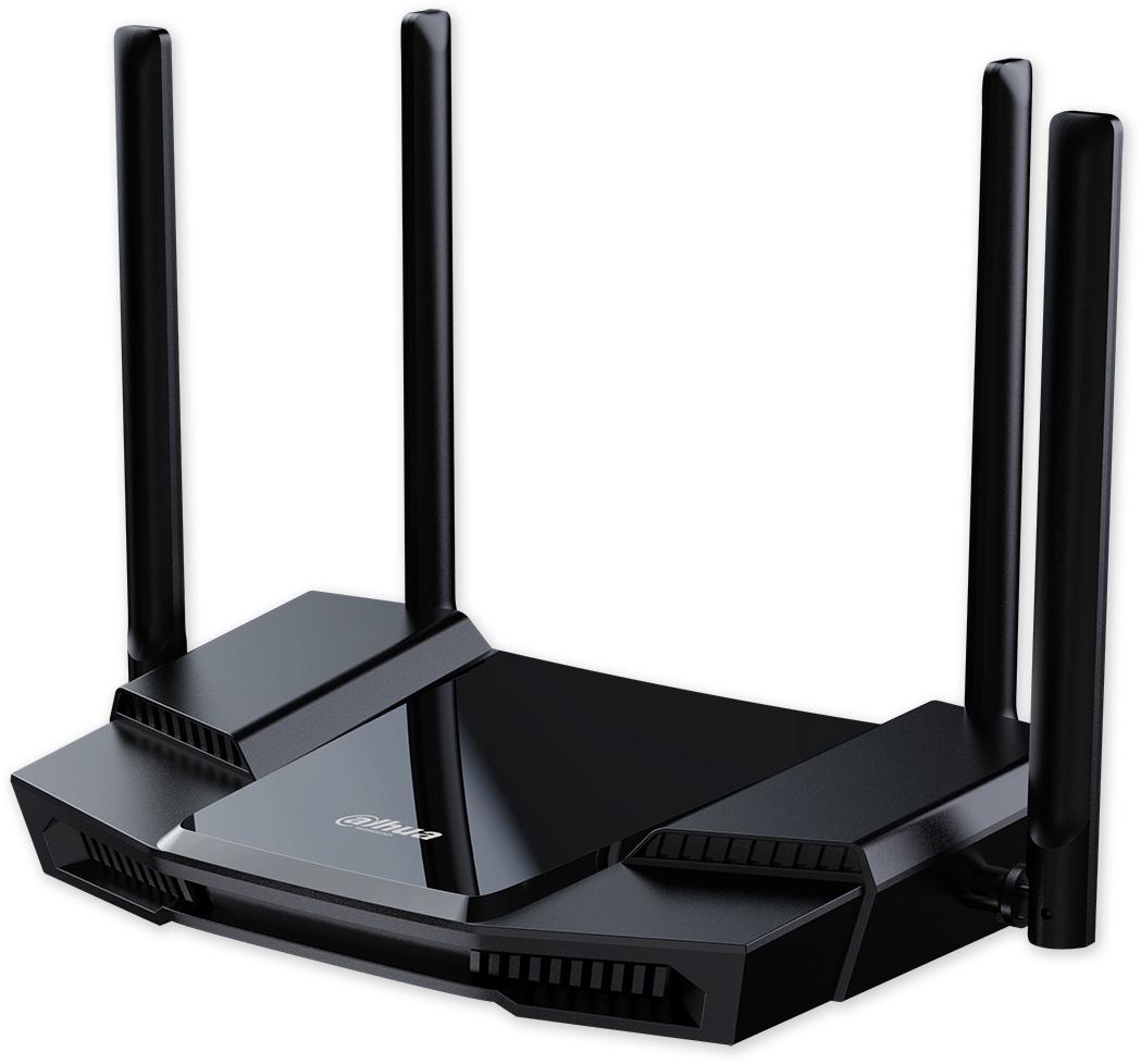 Router WiFi economic pentru acasă și afaceri mici, 4 antene omnidirecționale, viteză de transmisie de 1201 Mbps în banda de 5 GHz și 574 Mbps în banda de 2,4 GHz. Suport pentru protocoalele IEEE802.11 a/n/ac/ax și IEEE802.11 b/g/n, carcasă din plastic, alimentare de la adaptorul de 12 VDC inclus.