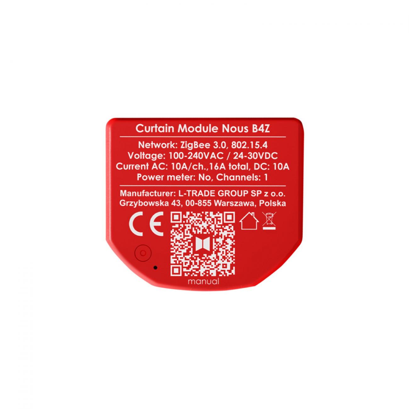 Controlerul inteligent ZigBee Nous B4Z oferă opțiuni flexibile de alimentare și funcționalitate ridicată. Releul cu un singur canal poate fi alimentat atât de 100-240VAC, cât și de 24-30VDC, oferind opțiuni multiple de cablare și crescând universalitatea dispozitivului. Cu suport pentru protocoalele Zigbee 3.0 și Zigbee2MQTT, Nous B4Z ZigBee poate fi integrat cu ușurință într-o varietate de sisteme smart home care sunt compatibile cu protocolul. Astfel, utilizatorii pot seta de la distanță temporizatoare sau automatiza controlul ușilor de garaj/jaluzele/rolelor în funcție de scenarii specifice.