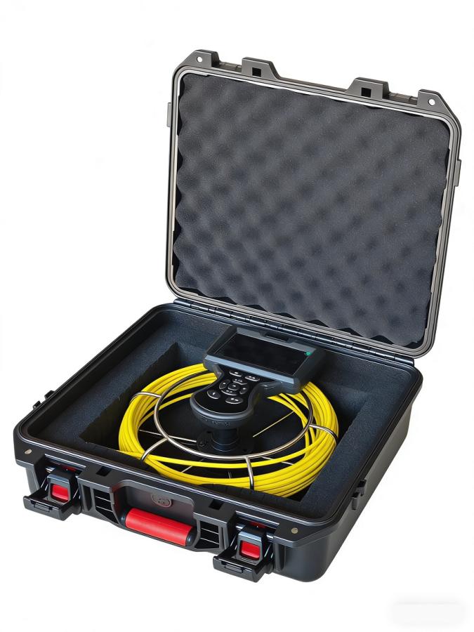 Configurația de bază utilizează un cablu de inspecție galben de 20 de metri, care este deosebit de potrivit pentru inspectarea coșurilor de fum, conductelor, canalizărilor și liniilor de utilități. Capul camerei este fabricat din oțel inoxidabil și dispune de iluminare LED puternică pentru lucrul în medii întunecate.