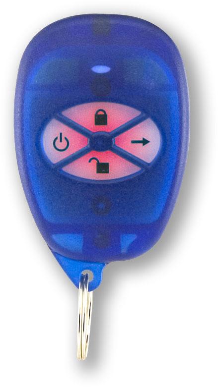 Breloc fără fir cu 4 butoane, chei albastre, iluminate din spate, cu card PROXIMITY încorporat. Este utilizat pentru controlul utilizatorului de la distanță a panourilor de control Paradox și controlul cititoarelor fără contact din suprastructura de acces Digiplex ACCESS.