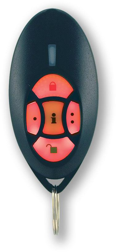 Breloc fără fir cu două sensuri, cu 5 butoane, negru, cu chei iluminate din spate. Este folosit pentru controlul utilizatorului asupra panourilor de control Paradox și pentru determinarea stării panoului de control cu semnalizare optică și acustică pe breloc.