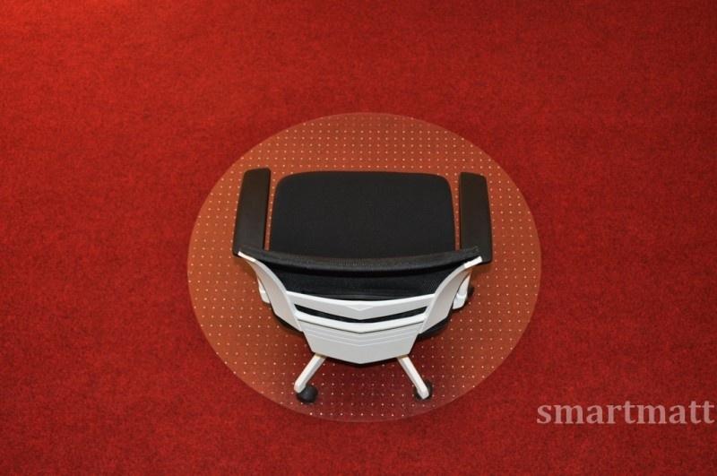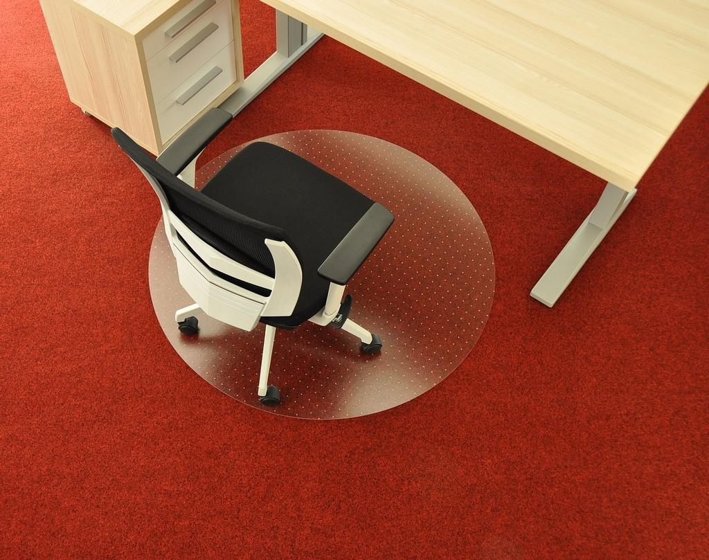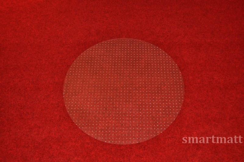 Covoraș pentru scaune cu rotile. Covorașul este fabricat din policarbonat de înaltă calitate, incasabil, rezistent la abraziune și ecologic. Partea superioară a covorașului are o textură minusculă care previne efectul de oglindă și permite scaunelor să se miște în liniște, cu cantitatea potrivită de frecare. Partea inferioară are sute de vârfuri pentru o aderență fermă pe covor. Denumirea produsului plăcuței = 5200PCTD . Diametru 120cm / decupaj tip D ( decupaj circular )