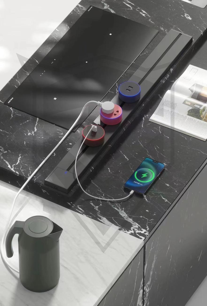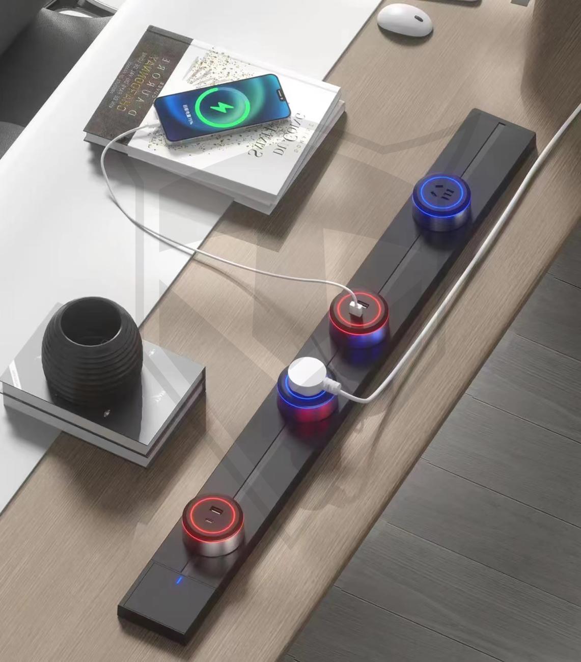 - Aspect elegant și curat: Designul inovator elimină cablurile aglomerate și oferă un spațiu estetic plăcut. Suprafața netedă este, de asemenea, ușor de curățat și întreținut.