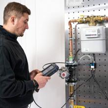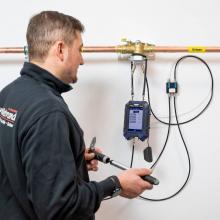 - Măsurătorile pe conductele de apă potabilă cu aer conform DIN EN 806 pot fi efectuate cu ușurință cu manometrul Wöhler M 603 datorită intervalului său de măsurare a presiunii de până la 3 bar. Cu Wöhler SC 660 Smart Connect, gama este extinsă la 60 bar.